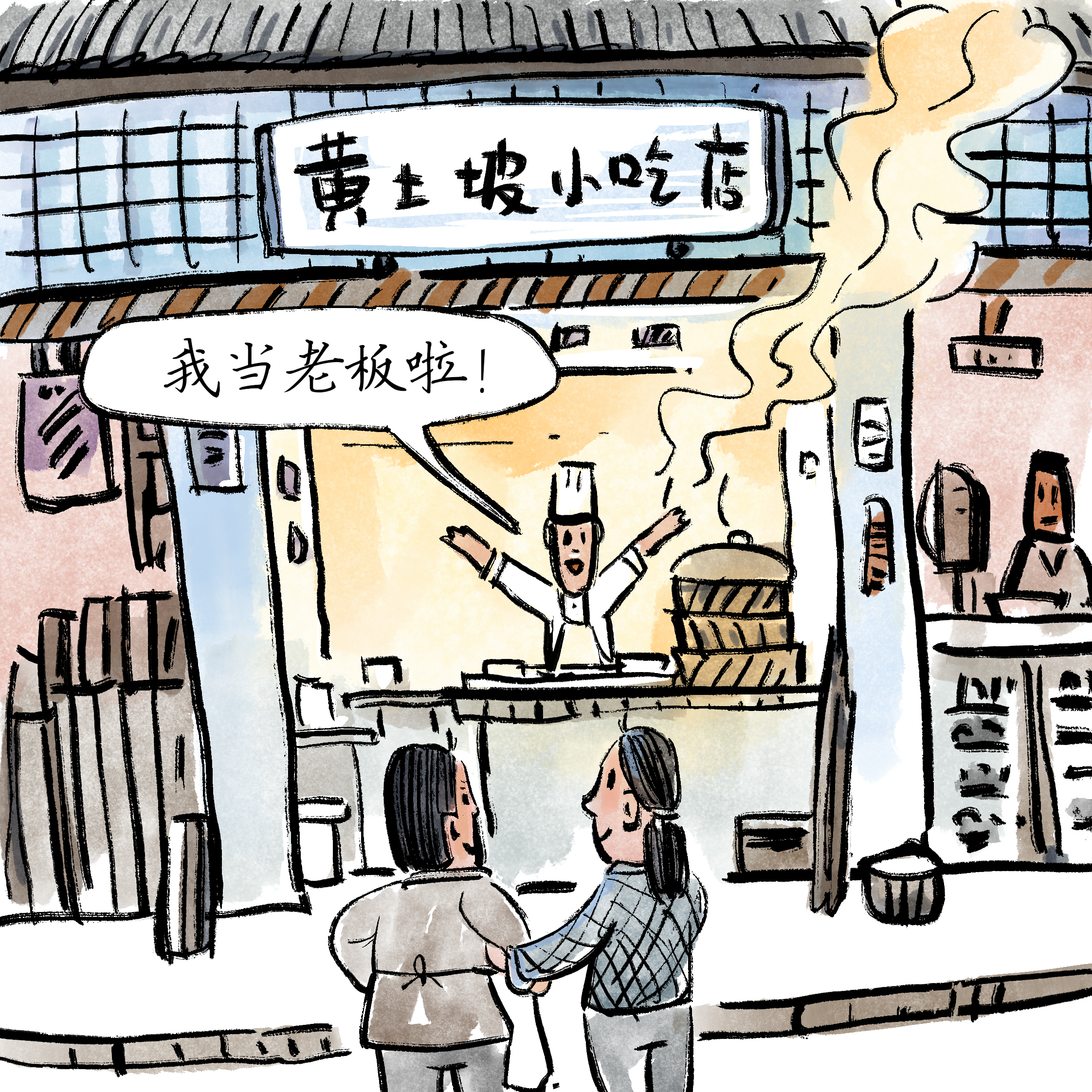 1988年在大二这年他选择了退学,母亲和姐姐为他凑了5500元创业资金,他在内蒙古巴彦淖尔市开了家“黄土坡小吃店”,主营凉皮、面筋、焖面等西北特色小吃,正式进入餐饮界。